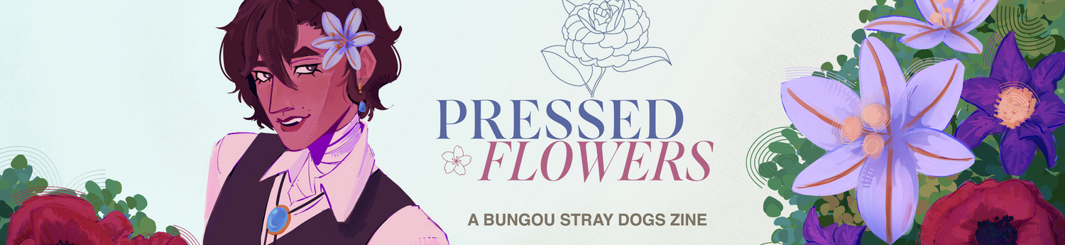 Pressed Flowers is a fanmade Bungou Stray Dogs zine themed around flowers and flower symbolism, utilizing the extensive cast from the series.